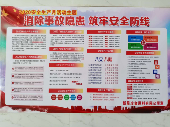 為響應國家安全生產月活動,根據鋼興集團公司《關于開展2020年“安全生產月“活動的通知》要求,新星公司緊緊圍繞“消除事故隱患、筑牢安全防線”的活動主題。結合新星公司安全工作實際情況,以加強安全意識,提高安全素質為著力點,深入開展安全月各項措施,安環(huán)部利用宣傳橫幅、張貼安全標語、標志標牌、LED電子顯示屏滾動播放相關安全知識和標語口號、網絡學習“血的教訓”事故案例等多種形式廣泛宣傳。